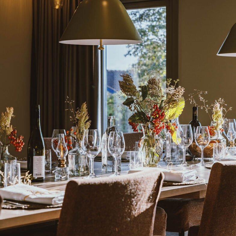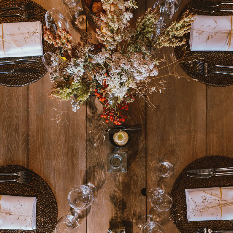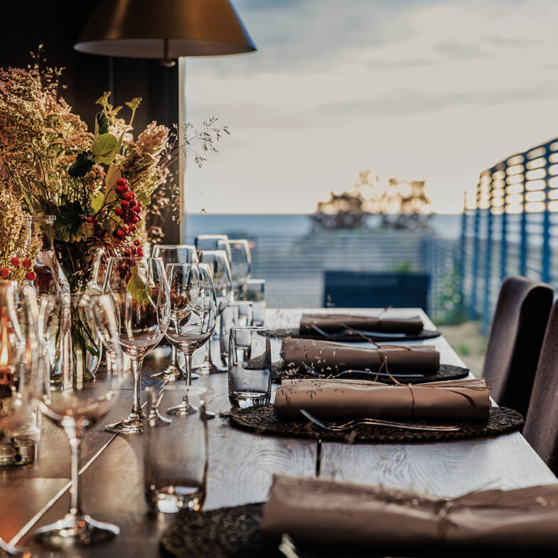 Signaturkoncept: Middag i 3 eller 5 serveringar. Alltid vackert dukat med säsongens blommor och dedikerad service.