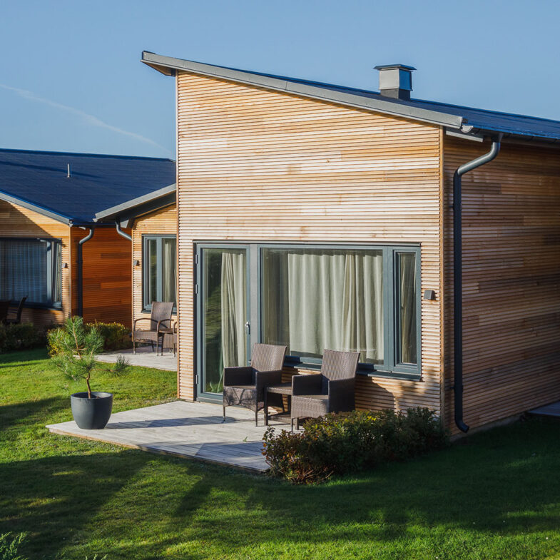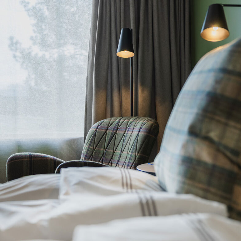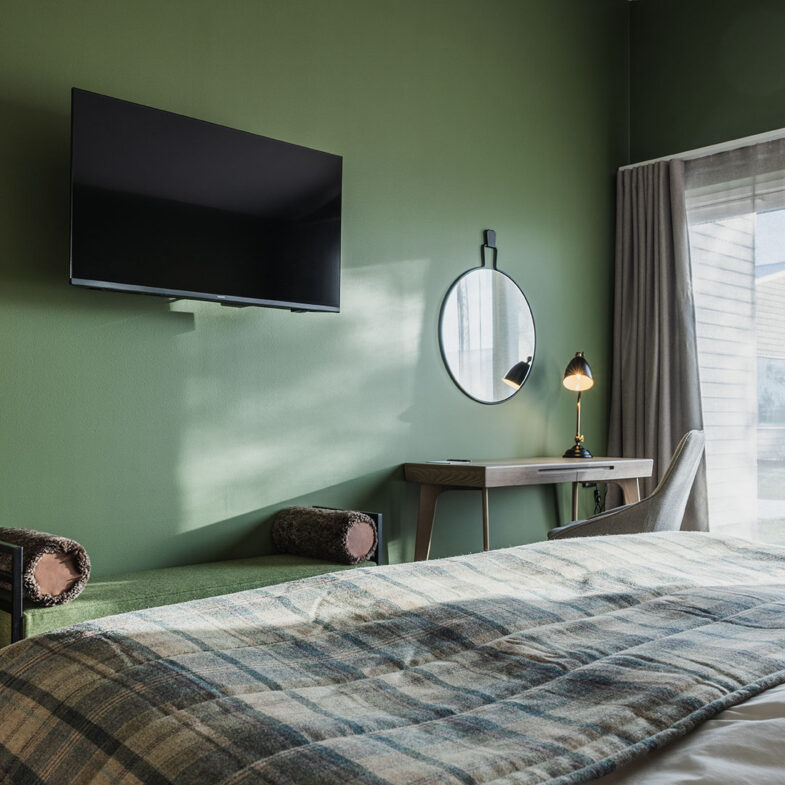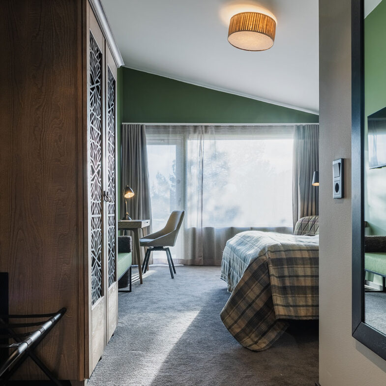Dubbelrummen i våra fristående hotellhus är inredda i skandinavisk design med genuina material, harmonisk färgsättning och naturen precis utanför fönstret. Rummet har två sängar som kan stå antingen ihop eller isär. Eget badrum och en härlig uteplats. I byggnaden bredvid ligger spaavdelningen och restaurang Bistron. Om du vill besöka spa och vara garanterad bord, boka ett paket där spa och middag ingår.